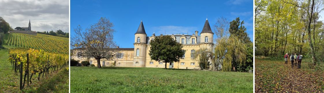 Après une pause déjeuner à l'orée d'un bois aux couleurs automnales, un sentier mène vers les Châteaux Lacaussade, Sentout et Lyde.
